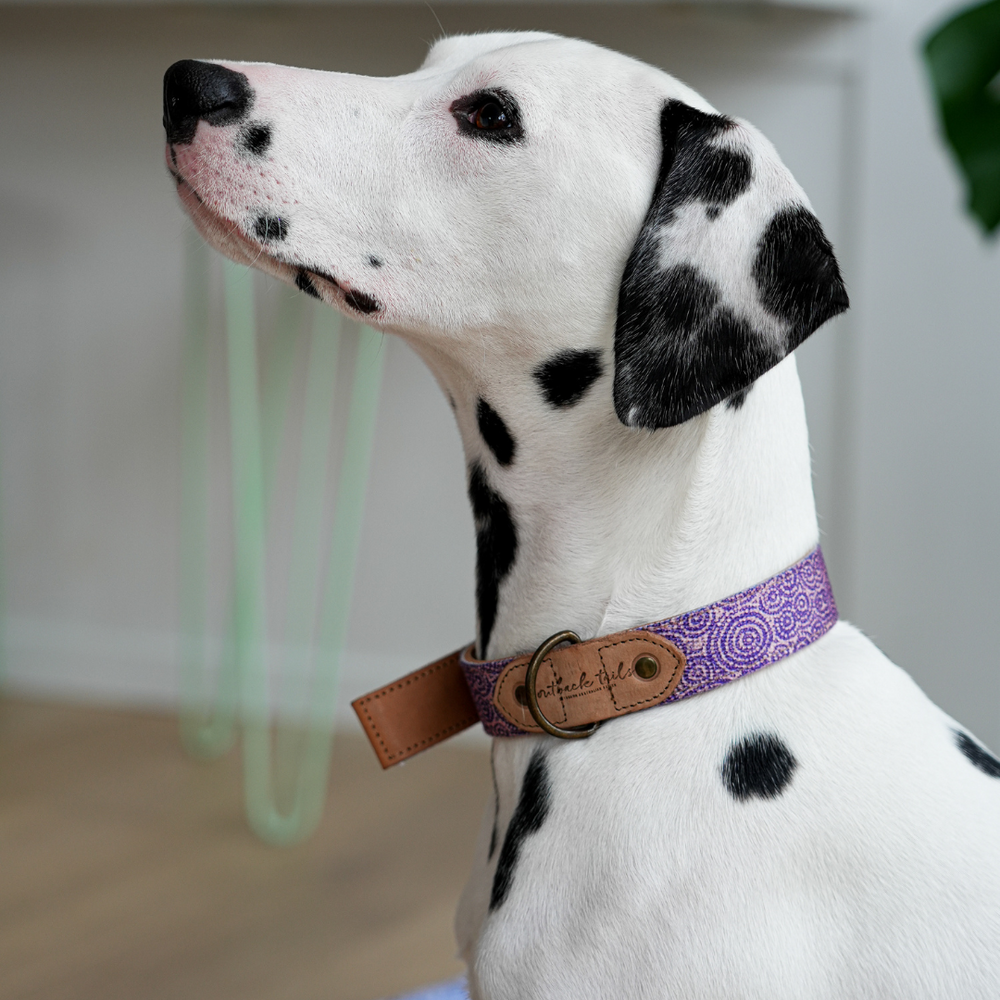 Our luxurious dog collars are made from soft, thick leather and brass hardware.