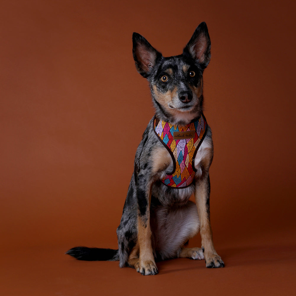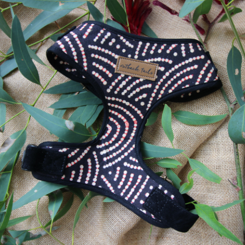 Inspired by the colours and landscapes of the Australian outback, our designer dog harness range features beautiful, authentic Indigenous artwork. Every piece celebrates culture and craftsmanship while directly supporting Aboriginal artists and their communities.