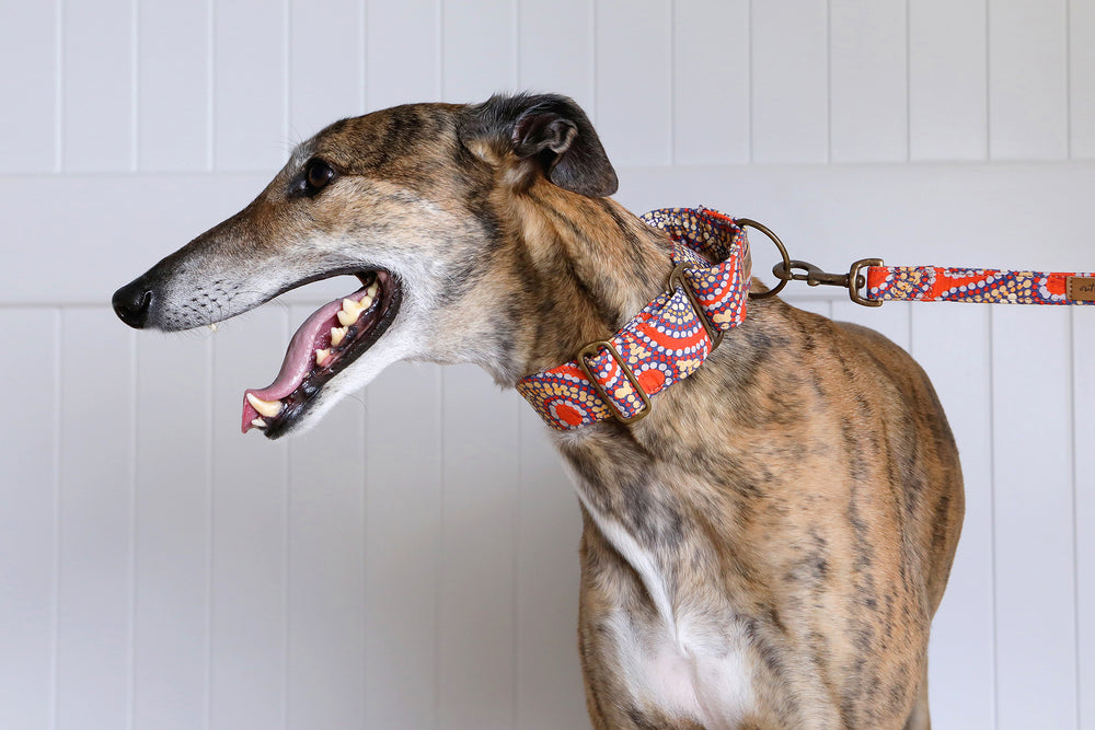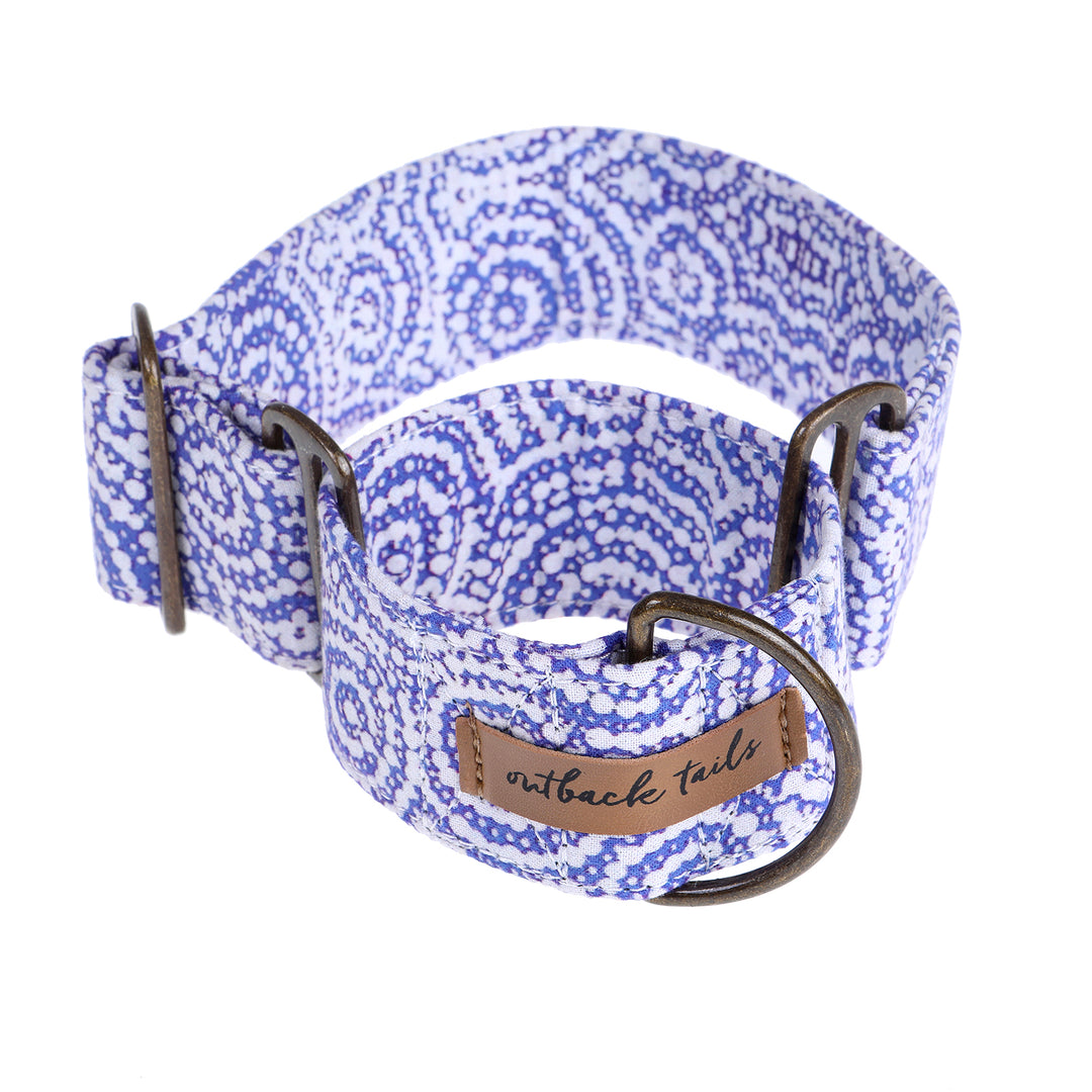 Designed for walking with sighthounds and dogs with heads narrower than their necks such as greyhounds, whippets and salukis. Martingale collars work to protect these breeds when they pull on their collar as the thickness of the design will not cut into their neck like a more narrow collar could when they lurch or pull on a walk.