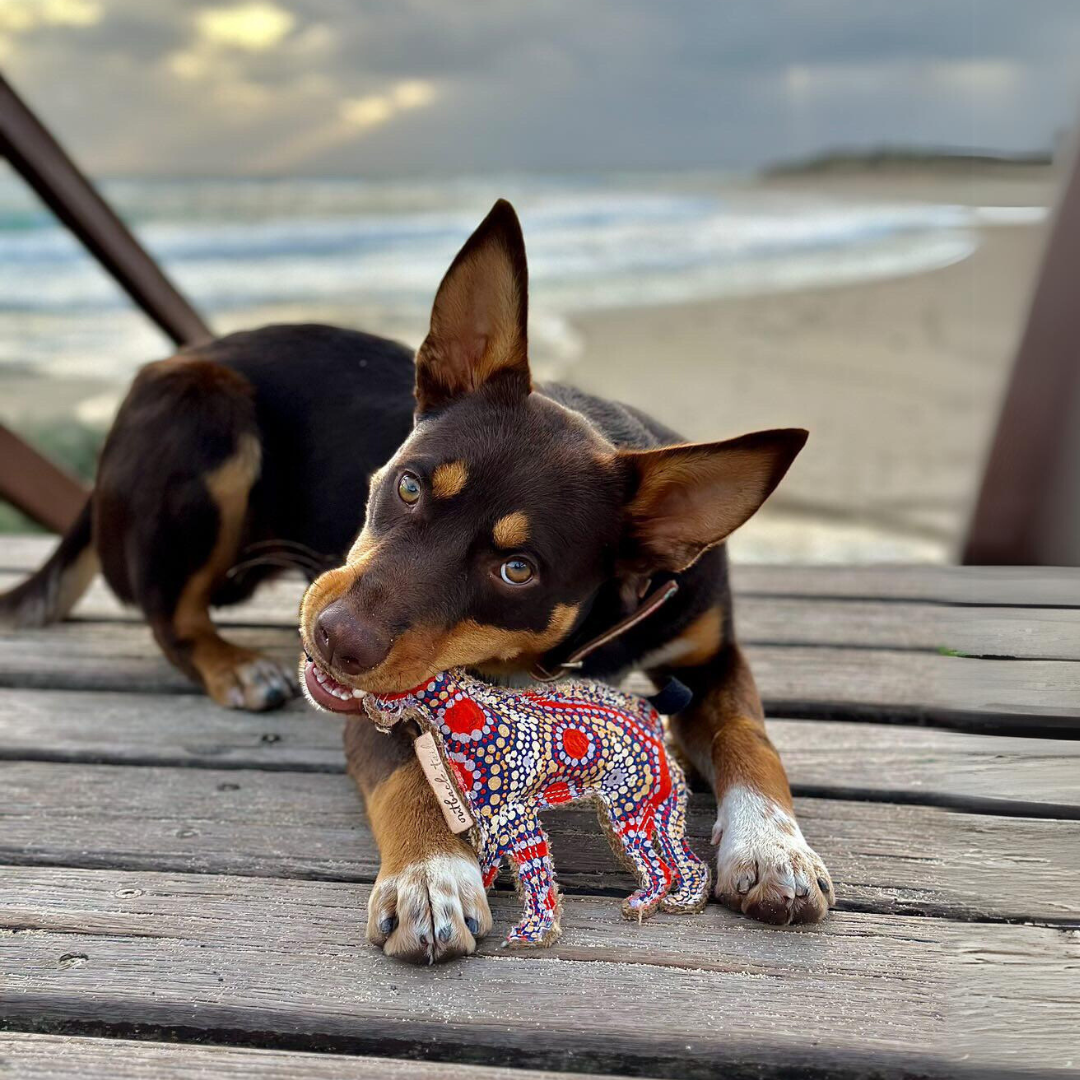 Our colourful Desert Dog chew toys help raise funds for the Aussie Desert Dogs program, a wonderful charity dedicated to finding loving, forever homes for stray and special needs dogs in remote Indigenous communities. Learn more about the program here.